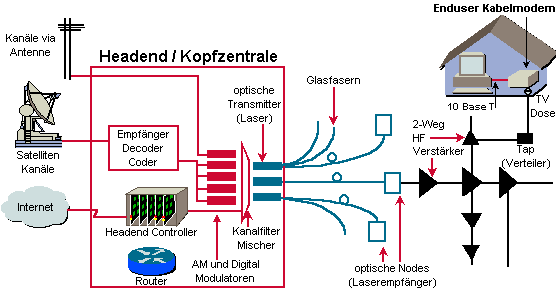 Schema eines für Internetdienste ausgerüstetes Kabelnetz